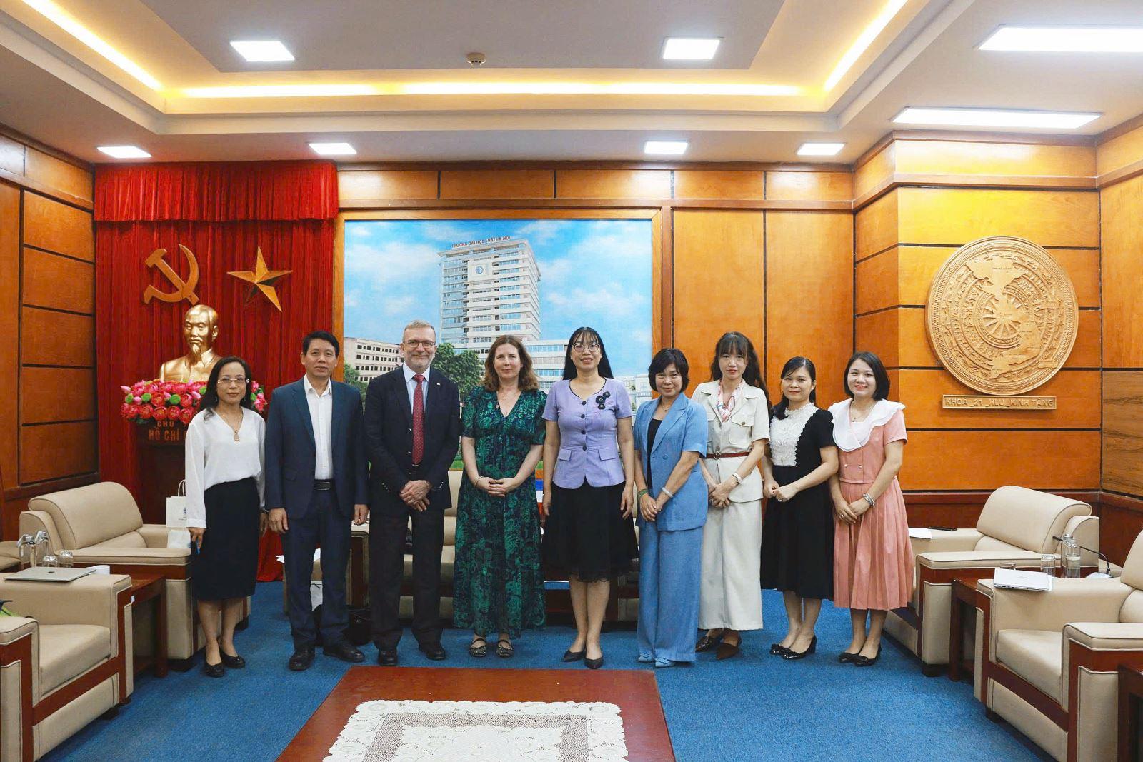 PGS.TS Vũ Thị Lan Anh – Phó Hiệu trưởng và Bà Anne- Charlotte Gros, Tổng Giám đốc Quỹ luật lục địa (la Fondation pour le droit continental) tại buổi làm việc.