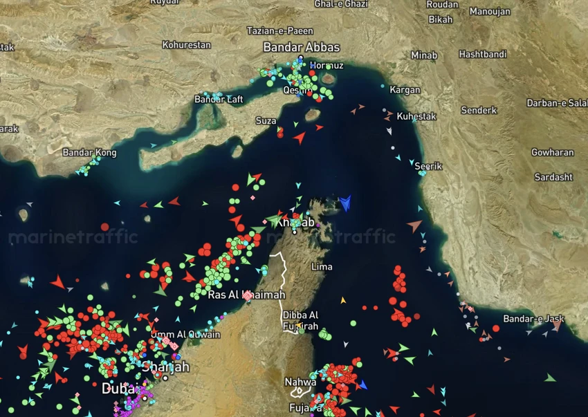 Tình hình eo biển Hormuz trưa 19-4. Ảnh: MARINE TRAFFIC