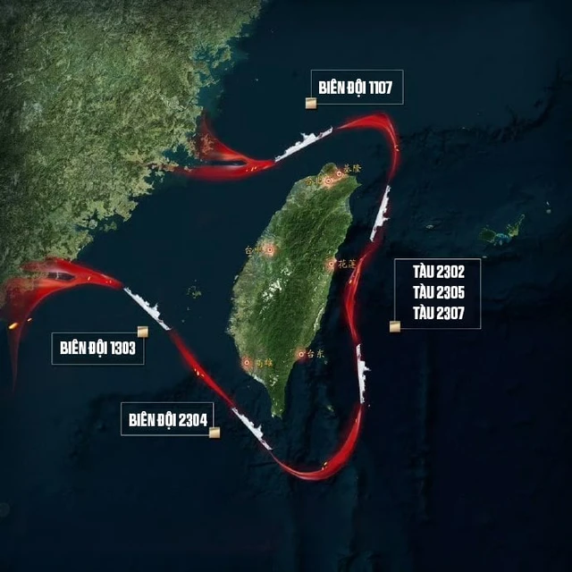 "Đại tá Thi Nghị, Người phát ngôn Bộ Tư lệnh Chiến khu miền Đông cho biết, bắt đầu từ ngày 1/4, Bộ Tư lệnh Chiến khu miền Đông thuộc Quân Giải phóng Nhân dân Trung Quốc (PLA) đã tập trung lực lượng lục quân, hải quân, không quân và lực lượng tên lửa, triển khai chiến đấu cơ và tàu chiến xung quanh đảo Đài Loan nhằm tiếp cận đảo từ nhiều hướng.