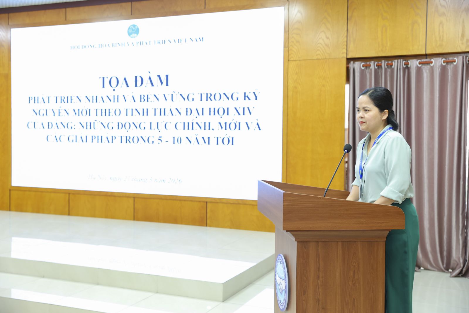 Buổi tọa đàm diễn ra dưới sự chủ trì của Ông Hà Hùng Cường, Chủ tịch Hội đồng Hòa bình và Phát triển Việt Nam, cùng sự điều phối của Phó Chủ tịch Đoàn Xuân Hưng. Tham dự sự kiện có các Ủy viên Ban Chấp hành Hội đồng và các chuyên gia kinh tế, nhà khoa học hàng đầu.